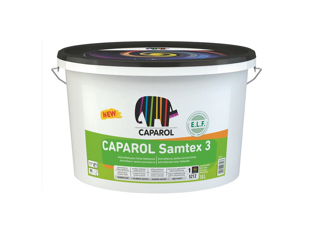 CAPAROL Samtex 3 je antireflexní interiérová barva se složením a vlastnostmi vybranými pro ochranu zdraví během užívání staveb i profesionálních malířů během její aplikace. Je vhodná zejména pro nátěry vnitřních stěn a stropů ze sádrových omítek a sádrových stěrek, omítek cementovo-vápenných nebo disperzních, betonu, pálených cihel a silikátových cihel i sádrokartonových desek. Je vhodná také pro přetírání starých nátěrů disperzních barev a na dobře sklolaminátové tapety. Pro své vlastnosti se doporučuje zejména do bytových a kancelářských prostor.